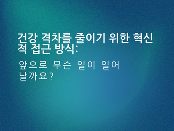 건강 격차를 줄이기 위한 혁신적 접근 방식: 앞으로 무슨 일이 일어날까요?